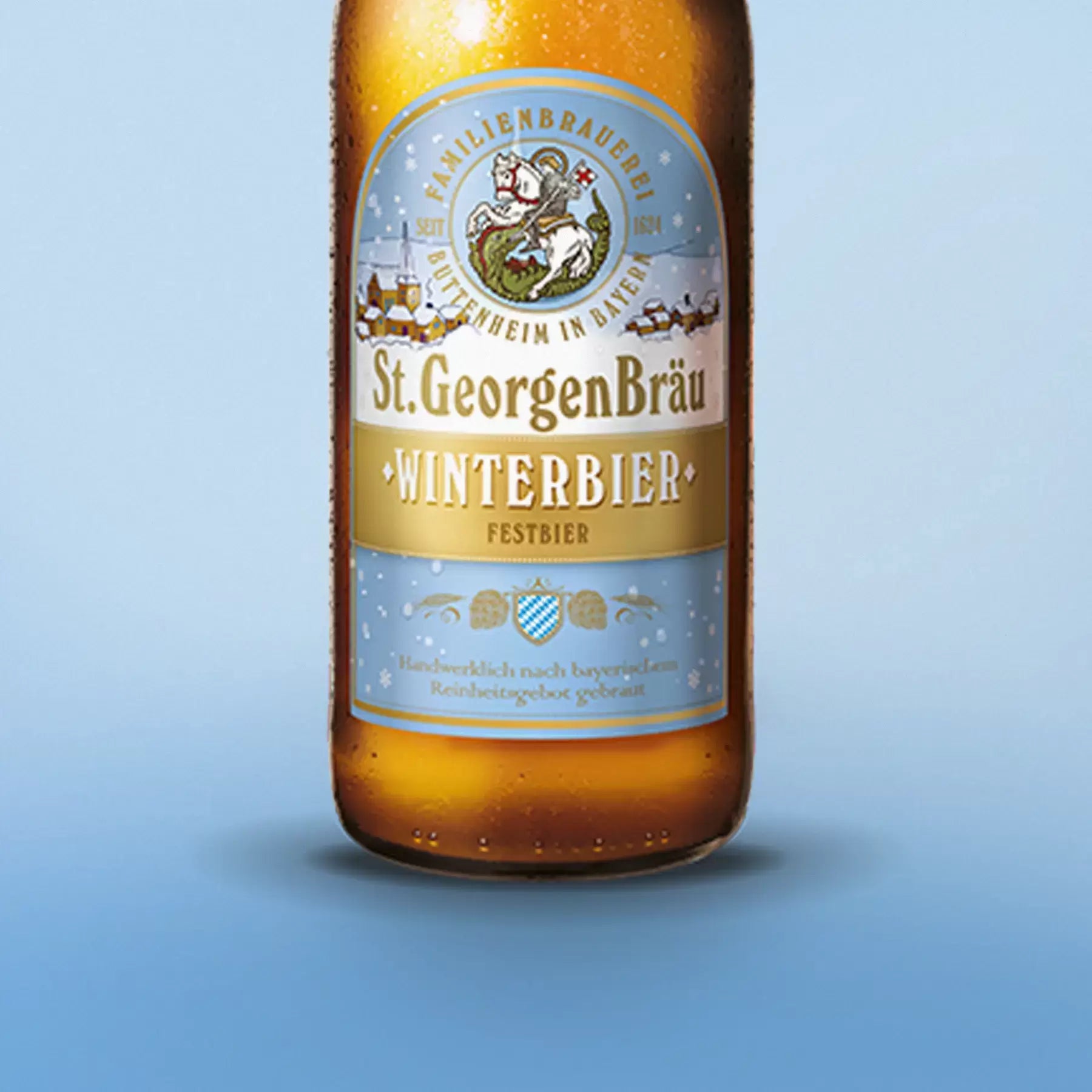 Das St. Georgen Winterbier ist ein festliches Bier mit einem Alkoholgehalt von 5,6 %. Es besticht durch seine tiefgoldene Farbe und seinen vollmundigen, malzigen Geschmack, der mit einer dezenten Süße harmoniert. Das Bier wird mit einer Kombination aus hellen und karamellfarbenen Braumalzen sowie erlesenen Aromahopfen gebraut, was ihm seine besondere Tiefe verleiht.